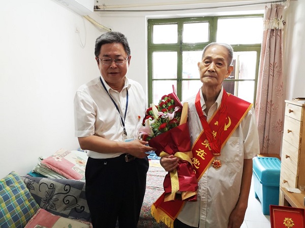 6月28日,北自所黨委書記、董事長王振林,黨委副書記、總經(jīng)理李金村,黨委副書記、紀(jì)委書記、工會主席岳秀江,代表公司黨委班子,來到離退休老黨員家中走訪,為黨齡50年的老黨員頒發(fā)“光榮在黨50年”紀(jì)念章。