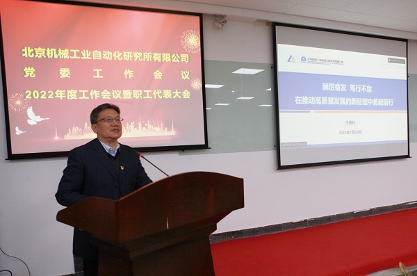 公司總經(jīng)理李金村代表領(lǐng)導班子以《深化改革創(chuàng)新 聚力提質(zhì)增效 奮力譜寫“十四五”高質(zhì)量發(fā)展新篇章》為題,做了2021年度工作報告。他指出,2021年是極不尋常的一年,北自所全面貫徹落實黨中央國務院重大決策部署,堅持戰(zhàn)略引領(lǐng),發(fā)揮黨建優(yōu)勢,把穩(wěn)增長、調(diào)結(jié)構(gòu)、推改革有機結(jié)合,全體干部職工攻堅克難、銳意進取,經(jīng)營發(fā)展改革各項工作取得顯著成效,實現(xiàn)了“十四五”良好開局。