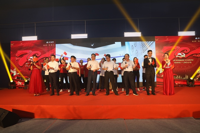 在演出的最后,北自所領(lǐng)導走上舞臺和現(xiàn)場人員合唱《我和我的祖國》將氣氛帶入高潮,200余名職工揮舞著國旗,一起歌唱祖國,共同慶祝盛世華誕,文藝匯演在裊裊歌聲和雷鳴般的掌聲中緩緩落幕。