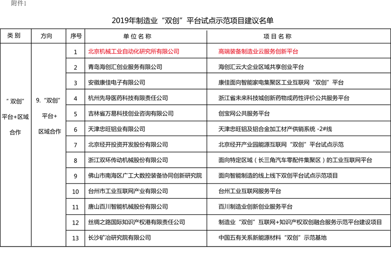為深入貫徹《國務(wù)院關(guān)于深化制造業(yè)與互聯(lián)網(wǎng)融合發(fā)展的指導(dǎo)意見》(國發(fā)[2016]28號),北自所結(jié)合自身業(yè)務(wù)特點(diǎn)和優(yōu)勢,按照《工業(yè)和信息化部辦公廳關(guān)于組織開展2019年制造業(yè)“雙創(chuàng)”平臺試點(diǎn)示范項(xiàng)目申報(bào)工作的通知》(工信廳信軟函〔2018〕146號)的相關(guān)要求,申報(bào)“雙創(chuàng)”平臺+區(qū)域合作方向項(xiàng)目。經(jīng)過綜合評審,工業(yè)和信息化部公示了擬核定2019年制造業(yè)“雙創(chuàng)”平臺試點(diǎn)示范項(xiàng)目名單,北自所申報(bào)的《高端裝備制造業(yè)云服務(wù)創(chuàng)新平臺》項(xiàng)目入選“雙創(chuàng)”平臺+區(qū)域合作方向名單目錄。