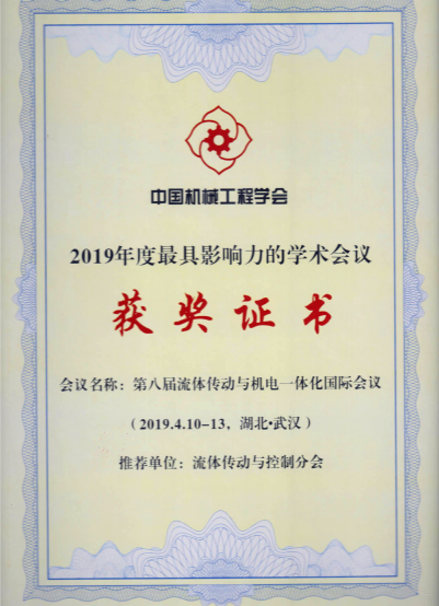 依托在北京機(jī)械工業(yè)自動(dòng)化研究所有限公司的中國(guó)機(jī)械工程學(xué)會(huì)流體傳動(dòng)與控制分會(huì)被中國(guó)機(jī)械工程學(xué)會(huì)授予“2019年度優(yōu)秀專業(yè)分會(huì)”稱號(hào);由流體傳動(dòng)與控制分會(huì)主辦的“第八屆流體傳動(dòng)與機(jī)電一體化國(guó)際會(huì)議”被中國(guó)機(jī)械工程學(xué)會(huì)授予“2019年度最具影響力的學(xué)術(shù)活動(dòng)”稱號(hào)。