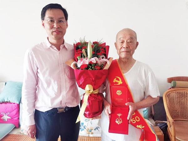 6月28日,北自所黨委書(shū)記、董事長(zhǎng)王振林,黨委副書(shū)記、總經(jīng)理李金村,黨委副書(shū)記、紀(jì)委書(shū)記、工會(huì)主席岳秀江,代表公司黨委班子,來(lái)到離退休老黨員家中走訪,為黨齡50年的老黨員頒發(fā)“光榮在黨50年”紀(jì)念章。