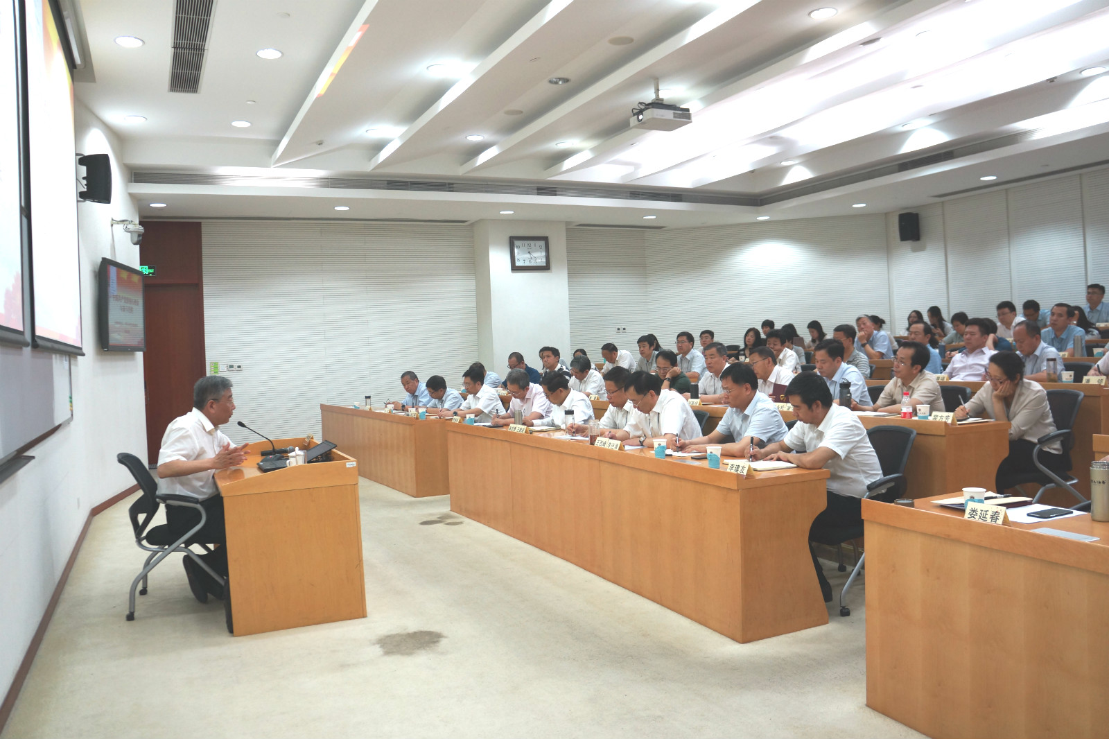為扎實(shí)開展“不忘初心、牢記使命”主題教育,貫徹落實(shí)國(guó)資委黨委主題教育各項(xiàng)工作要求,6月10日至6月28日,集團(tuán)黨委在中央黨校(國(guó)家行政學(xué)院)舉辦了“不忘初心、牢記使命”主題教育領(lǐng)導(dǎo)干部專題培訓(xùn)班。培訓(xùn)班分兩期,每期5天,集團(tuán)領(lǐng)導(dǎo)班子成員、二級(jí)單位班子成員、董監(jiān)高人員、黨群人事部門負(fù)責(zé)人以及總部中層以上領(lǐng)導(dǎo)干部共計(jì)140余人參加了培訓(xùn)。黨委書記、董事長(zhǎng)、總經(jīng)理王德成主持了開班式。