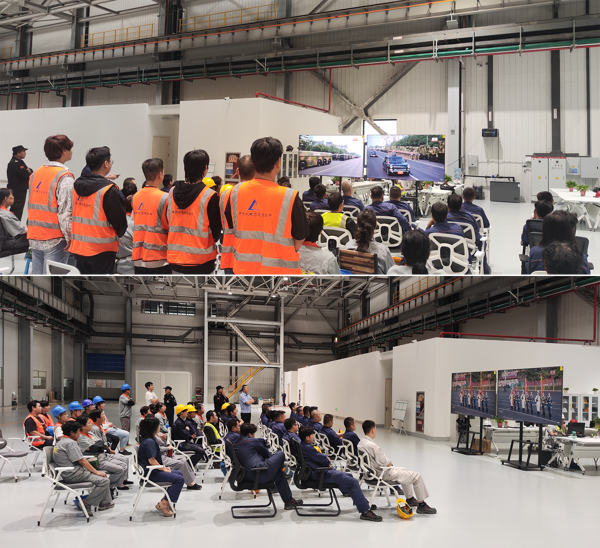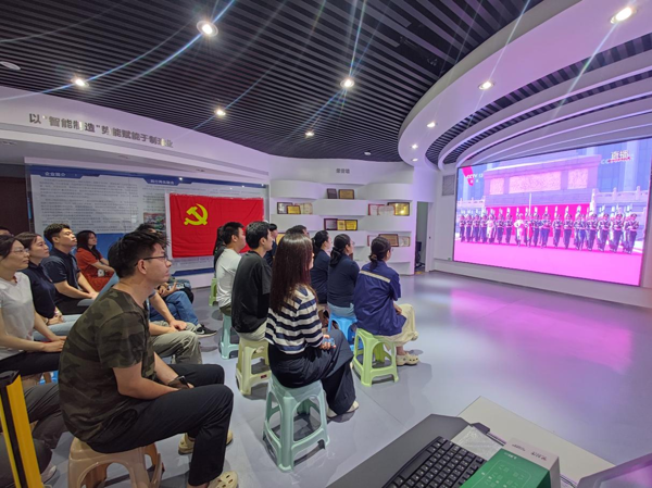 智能裝配事業(yè)部職工在項目現(xiàn)場收看大會直播