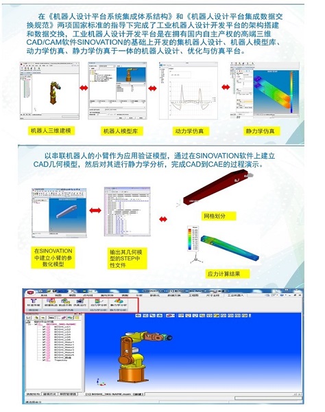 在國(guó)家863計(jì)劃先進(jìn)制造技術(shù)領(lǐng)域“基于CAD/CAE技術(shù)融合的工業(yè)機(jī)器人設(shè)計(jì)開(kāi)發(fā)平臺(tái)”項(xiàng)目的支持下,北京機(jī)械工業(yè)自動(dòng)化研究所有限公司成立標(biāo)準(zhǔn)研究組搭建CAD/CAE集成的體系架構(gòu),制定機(jī)器人設(shè)計(jì)平臺(tái)系統(tǒng)集成體系結(jié)構(gòu)和集成數(shù)據(jù)交換標(biāo)準(zhǔn),研發(fā)具有中國(guó)自主知識(shí)產(chǎn)權(quán)的工業(yè)機(jī)器人設(shè)計(jì)開(kāi)發(fā)平臺(tái)。該系列標(biāo)準(zhǔn)解決了我國(guó)工業(yè)機(jī)器人正向設(shè)計(jì)能力缺乏的現(xiàn)狀,彌補(bǔ)了傳統(tǒng)的工業(yè)機(jī)器人設(shè)計(jì)方法的不足,在標(biāo)準(zhǔn)化研究方面填補(bǔ)了在機(jī)器人設(shè)計(jì)開(kāi)發(fā)平臺(tái)領(lǐng)域的國(guó)內(nèi)外標(biāo)準(zhǔn)化空白,幫助企業(yè)縮短機(jī)器人設(shè)計(jì)周期,積累自主核心知識(shí)產(chǎn)權(quán),增強(qiáng)產(chǎn)品的科技含量與競(jìng)爭(zhēng)能力,促進(jìn)企業(yè)向制造業(yè)產(chǎn)業(yè)鏈高端轉(zhuǎn)變。