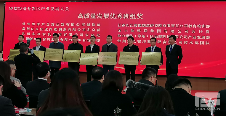 會議表彰了鐘樓經濟開發(fā)區(qū)2021年度高質量發(fā)展先進單位和個人。長江智造院榮獲二星企業(yè),總經理劉新獲得優(yōu)秀企業(yè)家殊榮,公司教育培訓部榮獲高質量發(fā)展先進班組稱號。