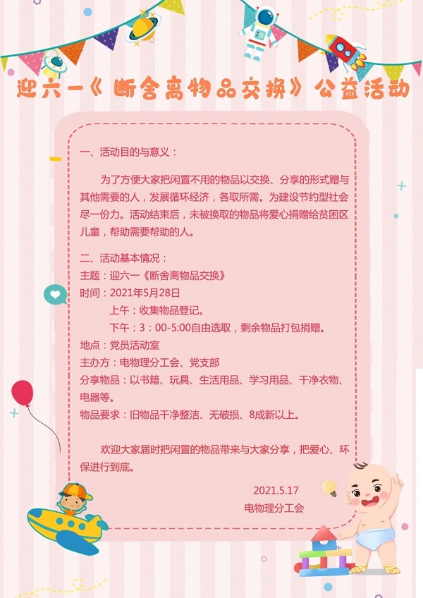 六一兒童節(jié)之際,北自所青年志愿服務(wù)隊來到了自2018年起進(jìn)行定點幫扶的“365晨光寶貝之家”,進(jìn)行志愿服務(wù)。本次志愿者團(tuán)隊由聯(lián)合一團(tuán)支部、電物理團(tuán)支部團(tuán)干及青年職工7名志愿者組成。