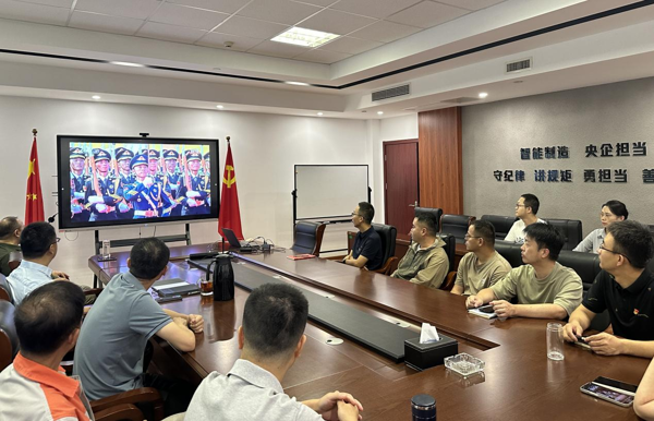 智能裝配事業(yè)部職工在項目現(xiàn)場收看大會直播