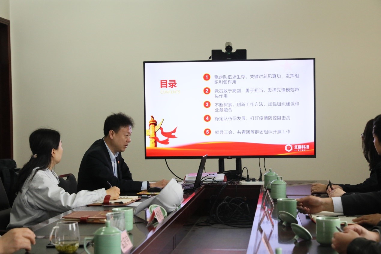 繼而雙方開展座談交流,介紹了各自支部人員基本情況,交流了支部黨建工作內容和經驗,重點交流了黨建工作亮點和特色做法,并觀看了北自科技黨建宣傳片。使得兩支部有了深入的了解,取長補短,共勉進步。