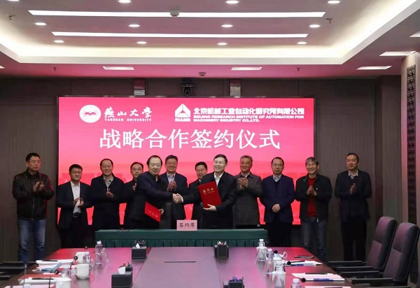 3月31日,北京機(jī)械工業(yè)自動(dòng)化研究所有限公司(以下簡稱北自所)、燕山大學(xué)(以下簡稱燕大)戰(zhàn)略合作協(xié)議簽約儀式在秦皇島舉行,雙方將在科研合作、平臺(tái)建設(shè)、人才培養(yǎng)等方面開展戰(zhàn)略合作。北自所黨委書記、董事長王振林,副總經(jīng)理黃雪,總工程師謝兵兵,技術(shù)發(fā)展部部長王寧威,液壓事業(yè)部總經(jīng)理李永順,機(jī)器人事業(yè)部副總經(jīng)理趙宏劍等參加儀式。燕大黨委書記趙險(xiǎn)峰、黨委常委、副校長趙永生等領(lǐng)導(dǎo)參加了本次簽約儀式,簽約儀式由燕山大學(xué)黨委書記趙險(xiǎn)峰主持。