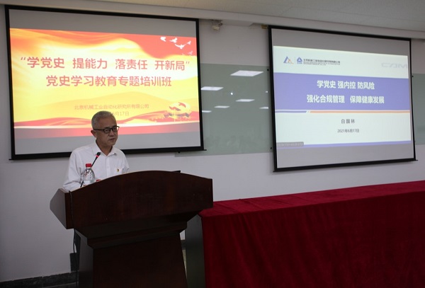 公司黨委副書記、總經(jīng)理李金村以《學(xué)黨史、強(qiáng)信念,推動北自所高質(zhì)量發(fā)展》為題,講述了黨的百年發(fā)展歷程,并從目標(biāo)定位、重點(diǎn)任務(wù)和思維觀念等方面,提出了推動公司高質(zhì)量發(fā)展的工作思路。